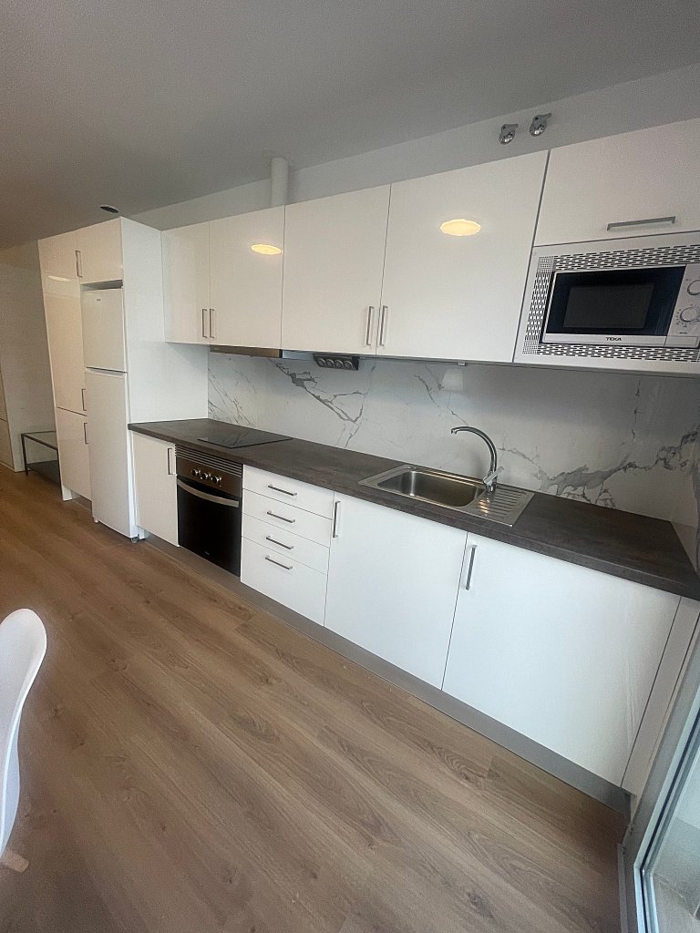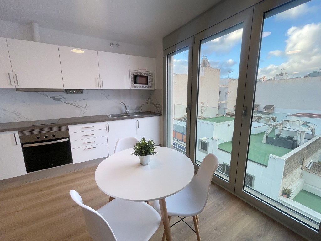 Y en este entorno se encuentra la vivienda que presentamos hoy. En su configuración interior, este apartamento dispone de un espacio multifuncional que cuenta con zona de salón-comedor y cocina equipada con todos sus electrodomésticos.