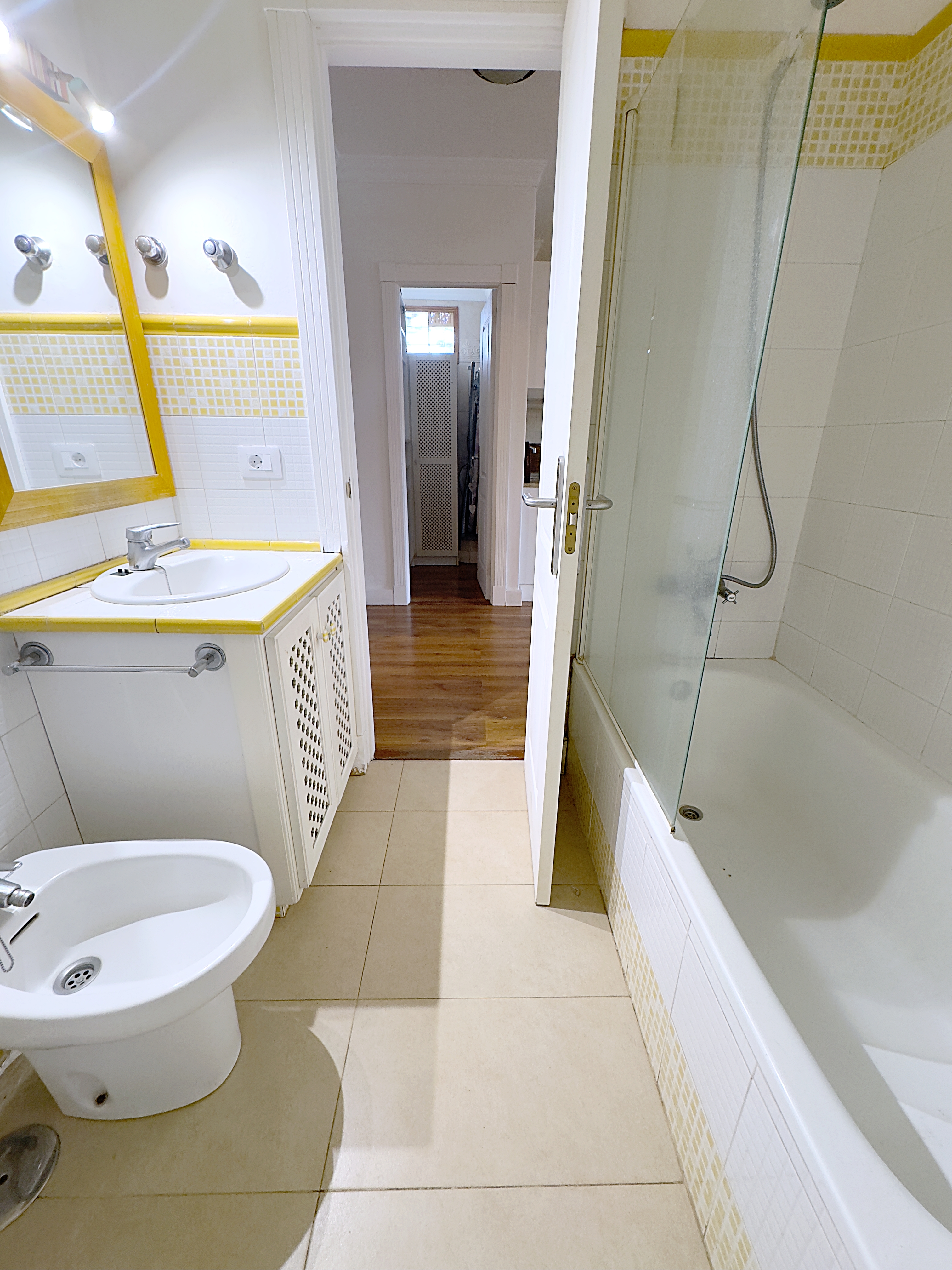 En su zona privada cuenta actualmente con dos habitaciones bastante amplias (originalmente eran tres), una de ellas con un área vestidor incorporada.